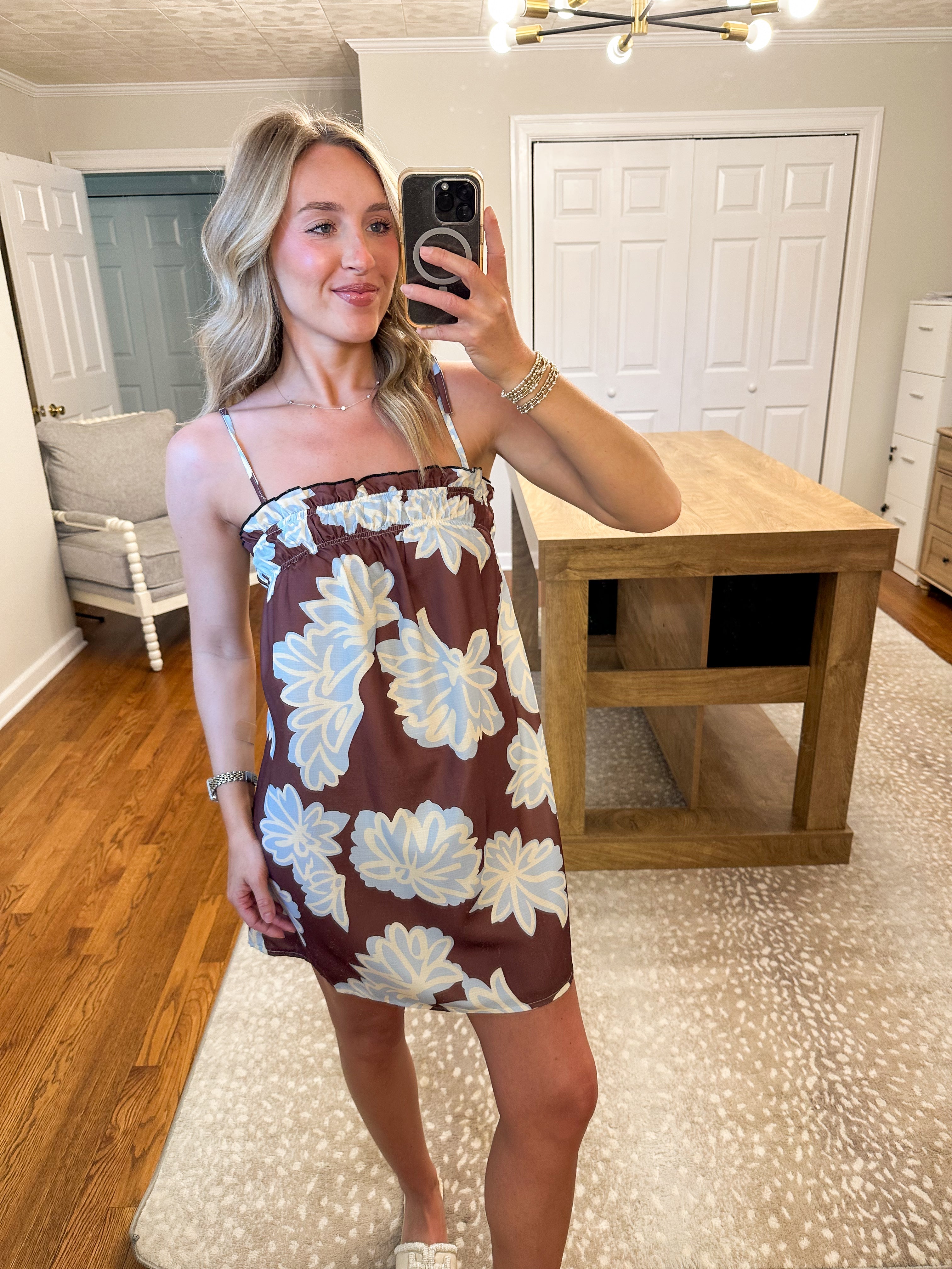 Palma Floral Mini Dress- Brown/Blue