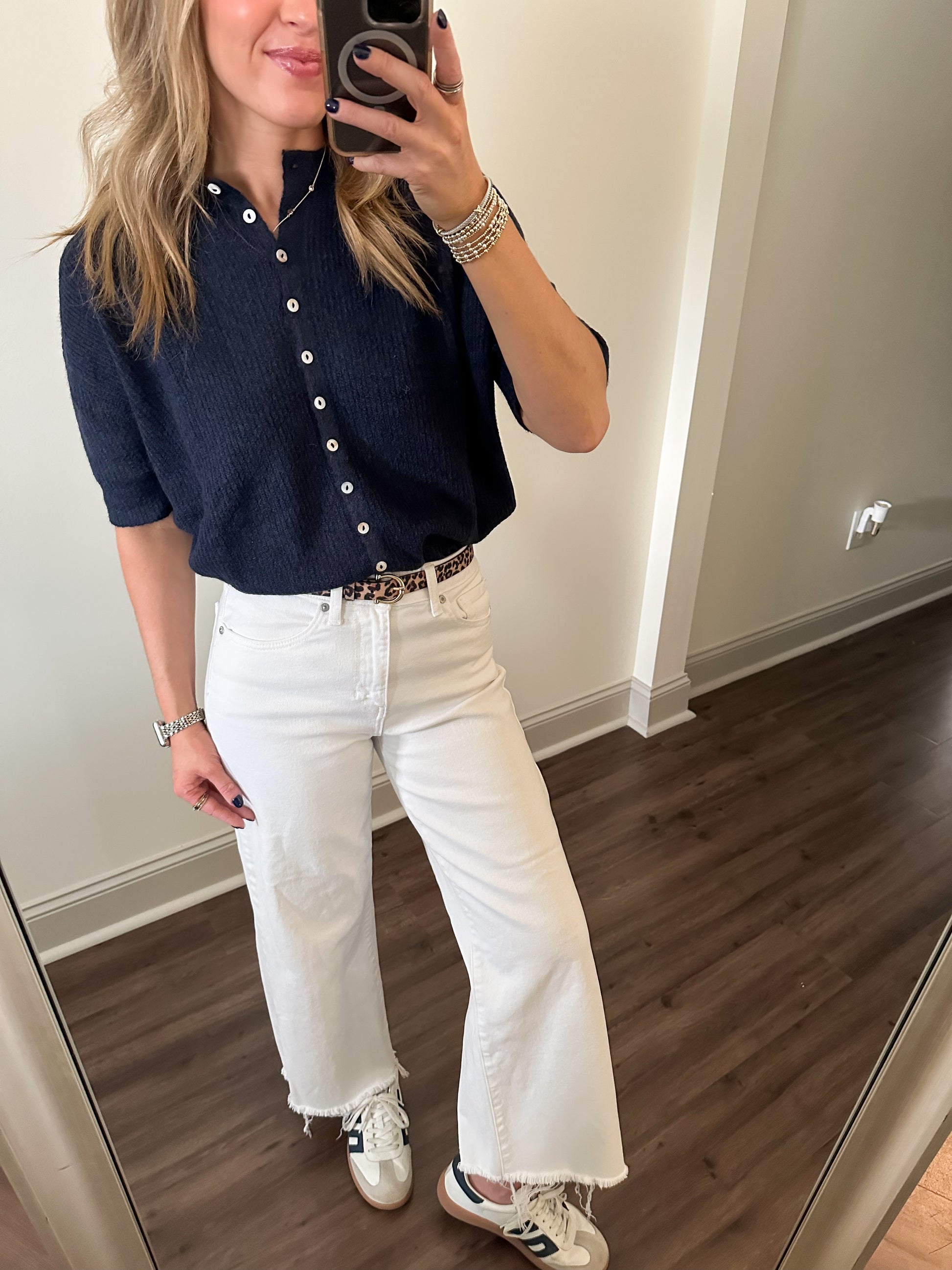 Wrap yourself in effortless style with the Kinzie Cardigan in classic navy! This short-sleeve button-up is the ultimate layering essential for breezy days and cool evenings. Soft, comfortable, and endlessly versatile, it pairs beautifully with everything in your closet. The timeless navy shade keeps things chic while the relaxed fit ensures all-day comfort.
