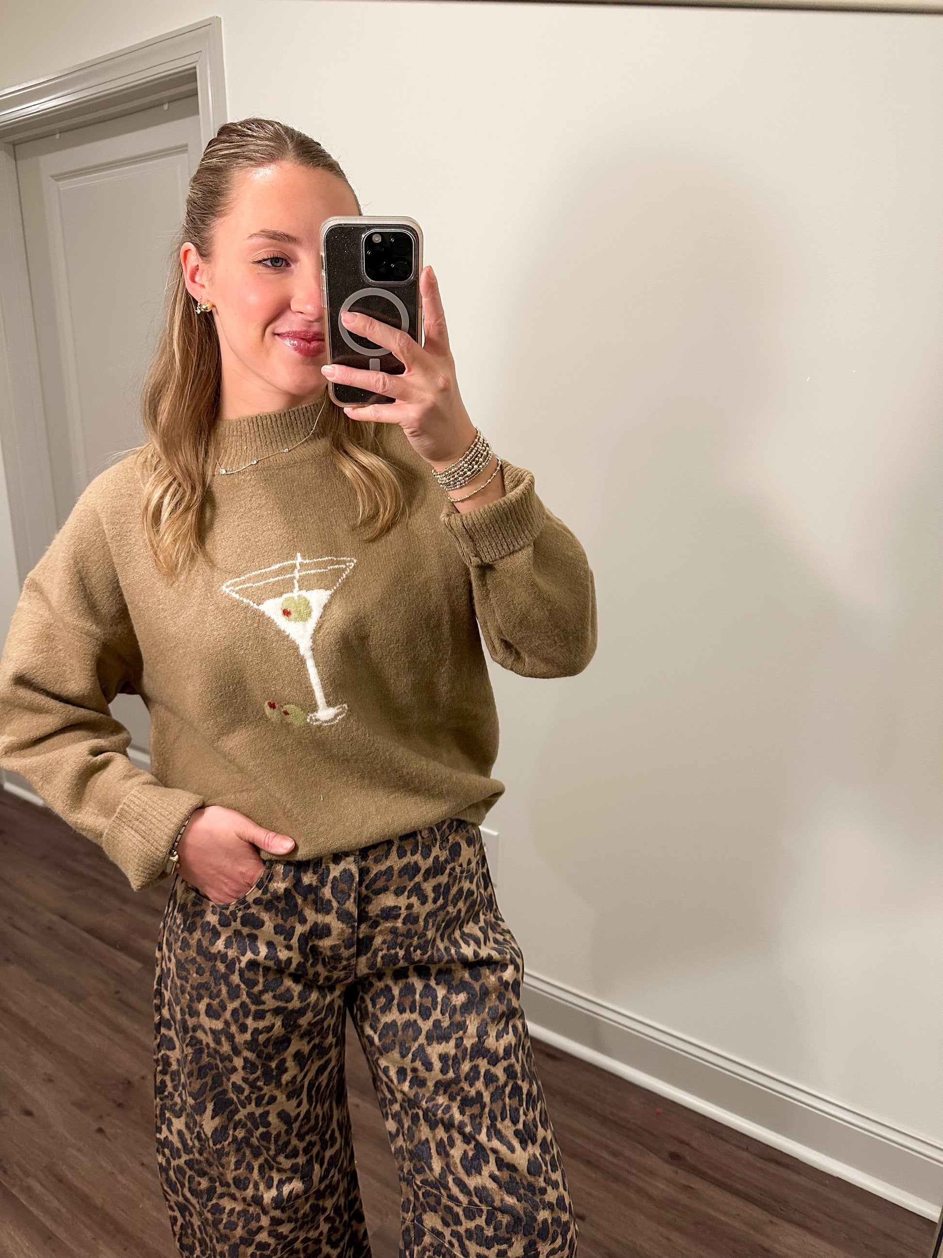 Get ready to shake up your wardrobe with our Martini Sweater in Navy! This fun and stylish sweater features a unique martini design in a classic mocha color. Perfect for adding a touch of fun to your outfit, while keeping you warm and cozy. Cheers to a fashionable look!