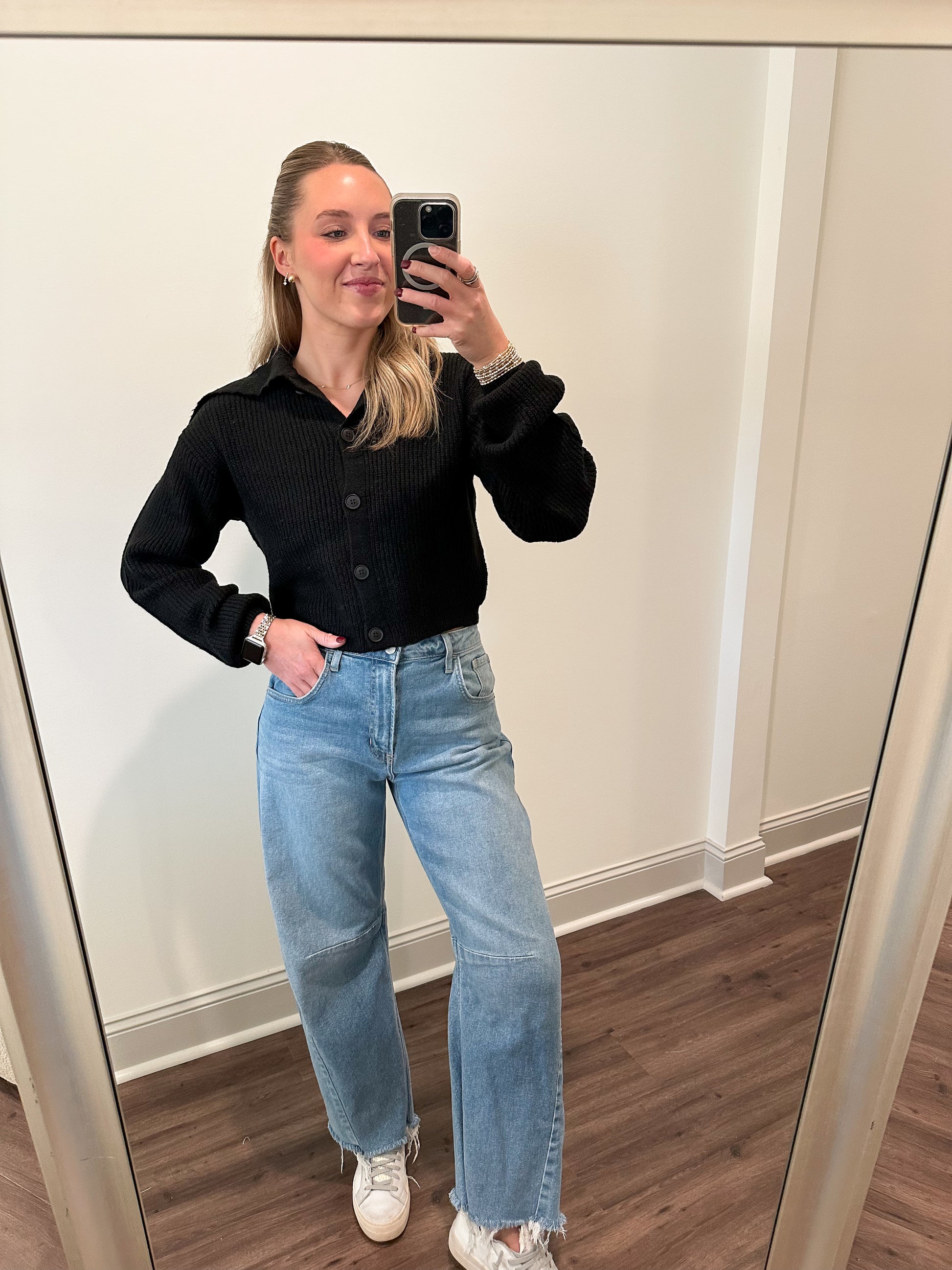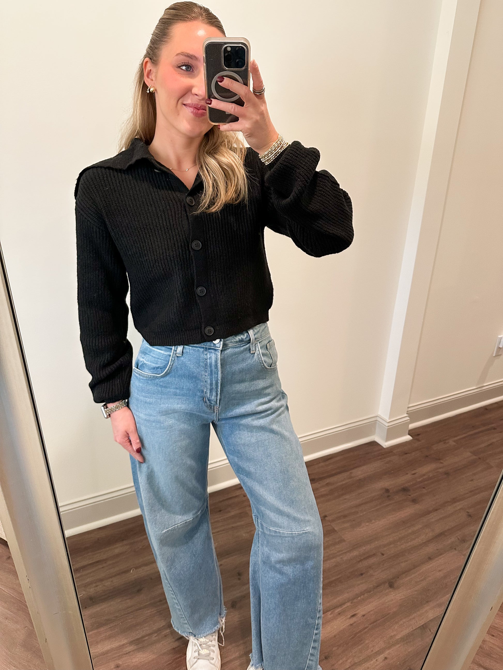 Embrace cooler seasons with this snug sweater featuring a classic collar and front button detail. Ideal for layering, pair it with tailored trousers or a playful skirt for a versatile look. Perfect for casual outings or a cozy night in.